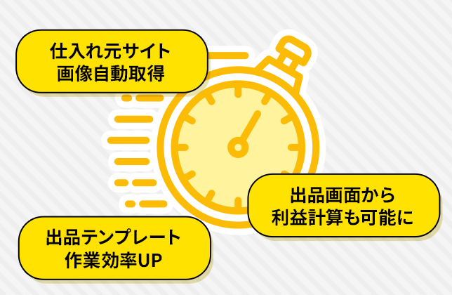出品機能で費用対効果の低い出品作業は全て効率化が可能です。写真の自動取得もでき、従来出品にかかっていた手間を無くしました。利益につながる部分に自分の時間を割くことが出来るようになります。