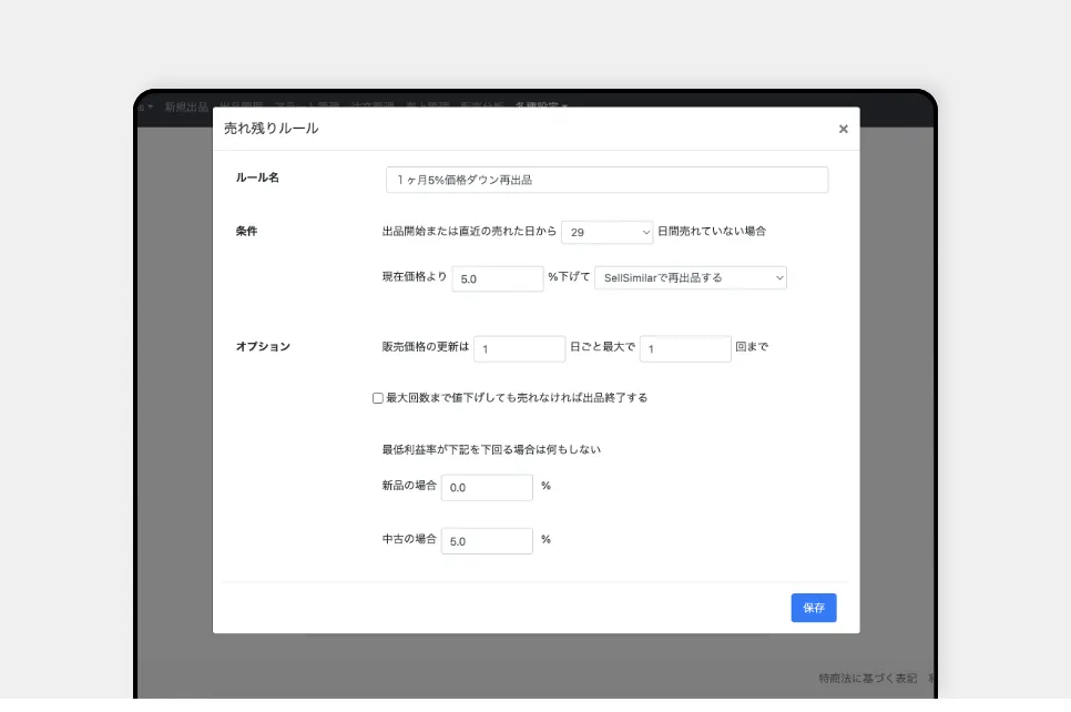 • 一定期間売れた商品を自動検知し、価格を下げる
