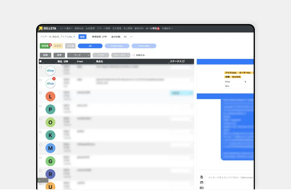 • eBayにログインせずセルスタ内で直接メール確認・返信